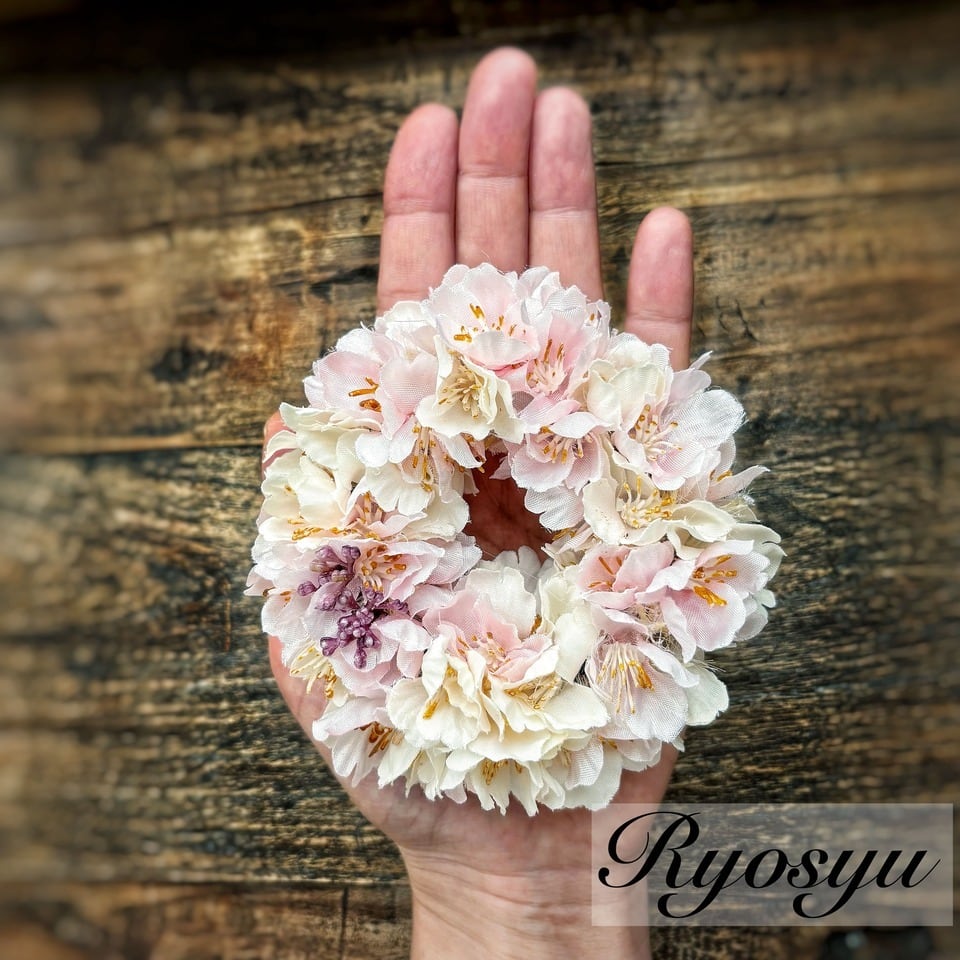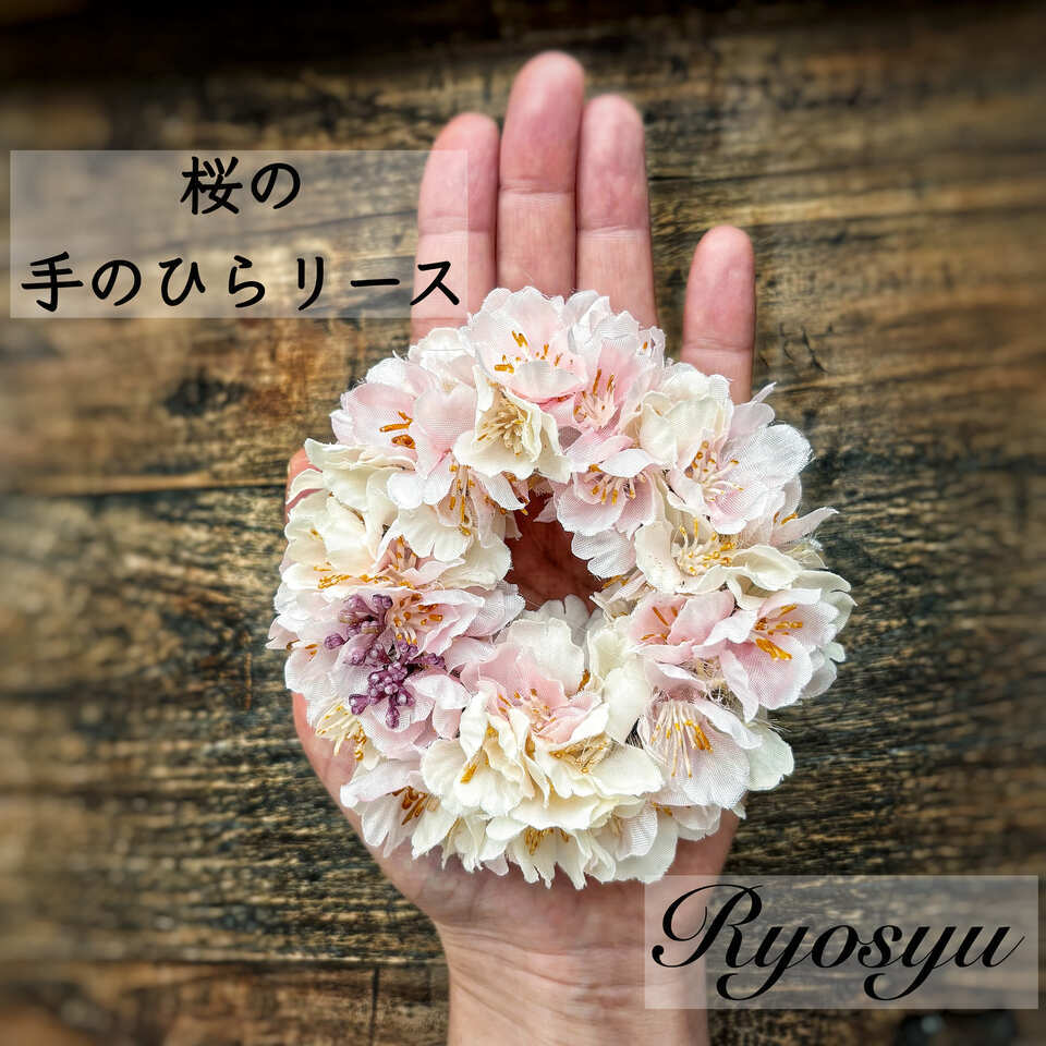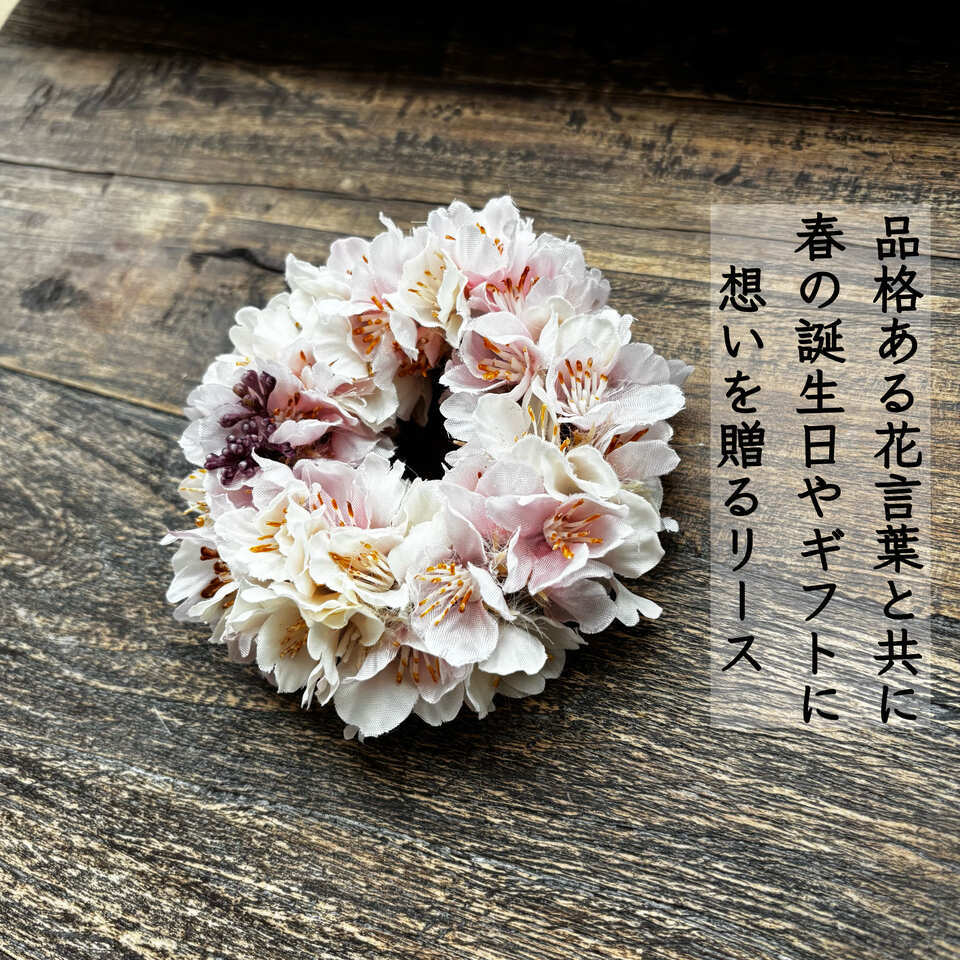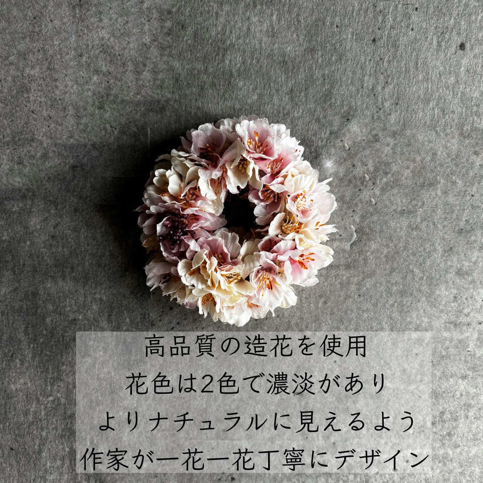 2色の桜を重ねて桜景色をリースに閉じ込めました。